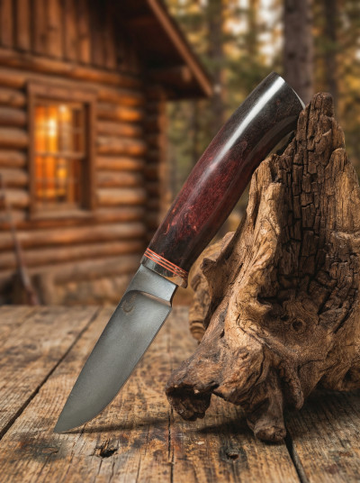 Нож Шкурник, сталь PGK, мельхиор, стабилизированная карельская береза