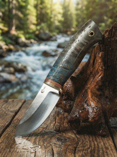 Нож Турист, сталь PGK, мельхиор, стабилизированная карельская береза