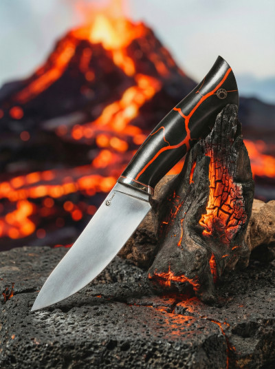 Нож Шкурник, сталь PGK, мельхиор, стабилизированная карельская береза