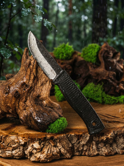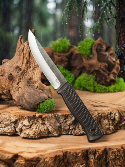 Нож Лесник, ст.Х12МФ, след ковки, рук. Elastron (черный)